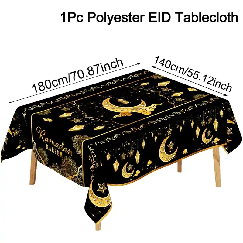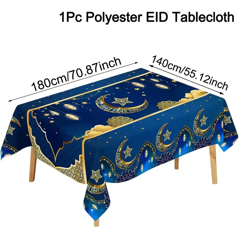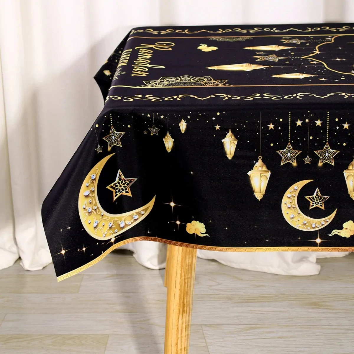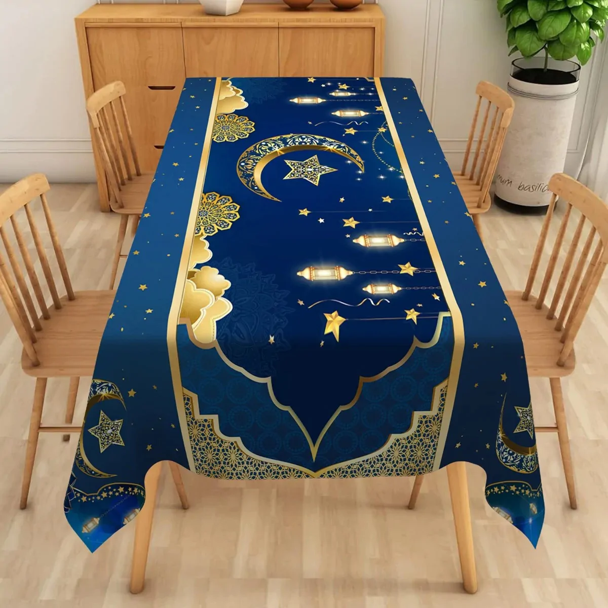 مفرش طاولة بوليستر على شكل قمر ونجمة